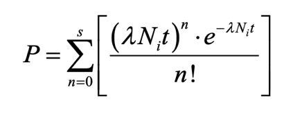 P为备件可用概率,S为所需备件的数量,λ为第i类零部件的故障率,Ni 为一台装备上第i类零部件的数量,即单机基数,t为使用时间或预防缺货的间隔时间。